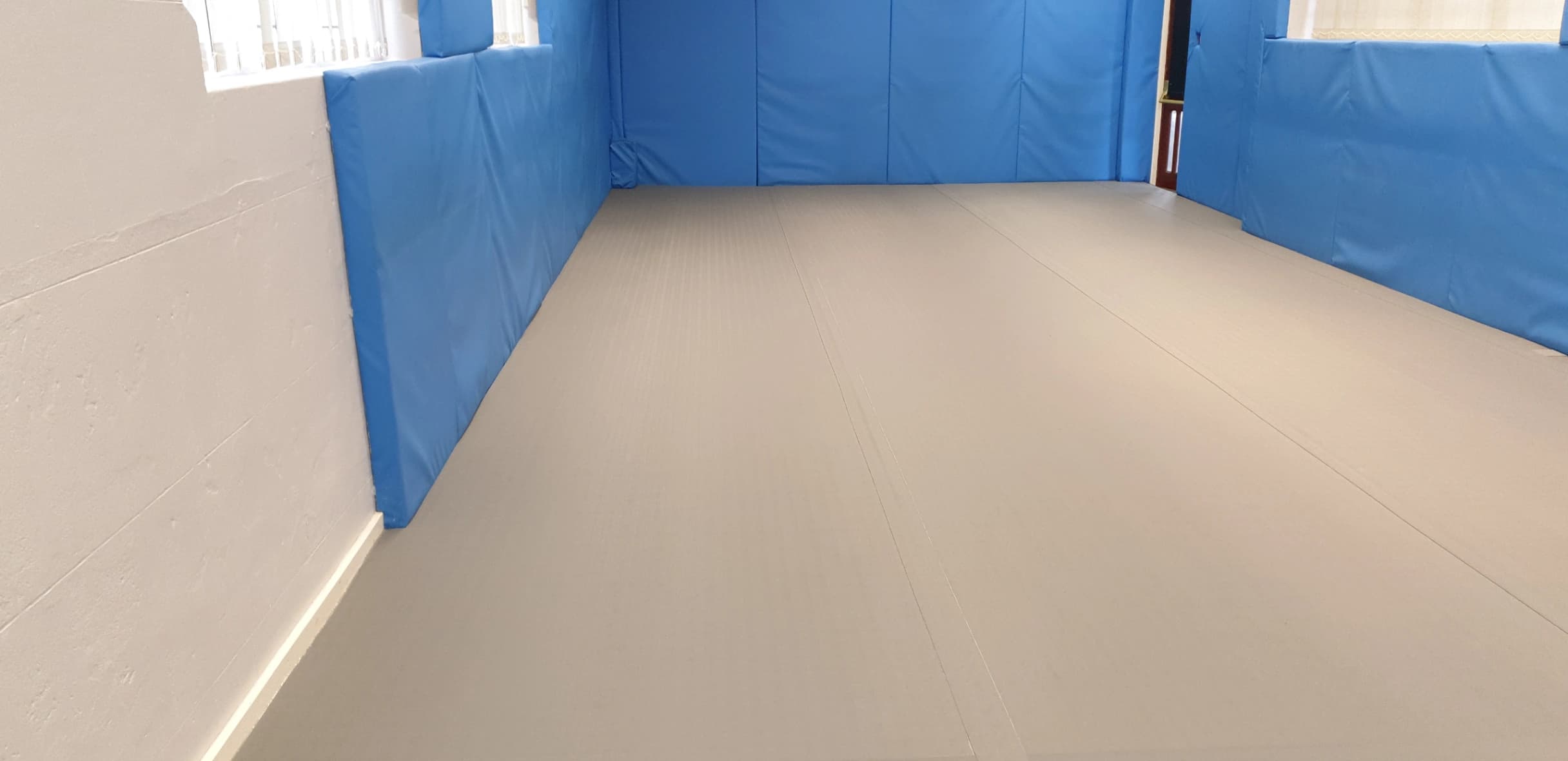 Roll Out Mats can create a virtually seamless flooring system and can be custom made to fit your room dimensions.